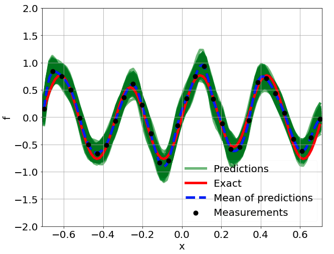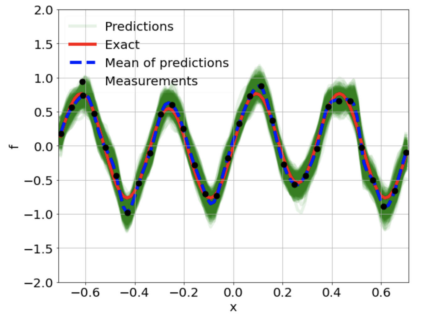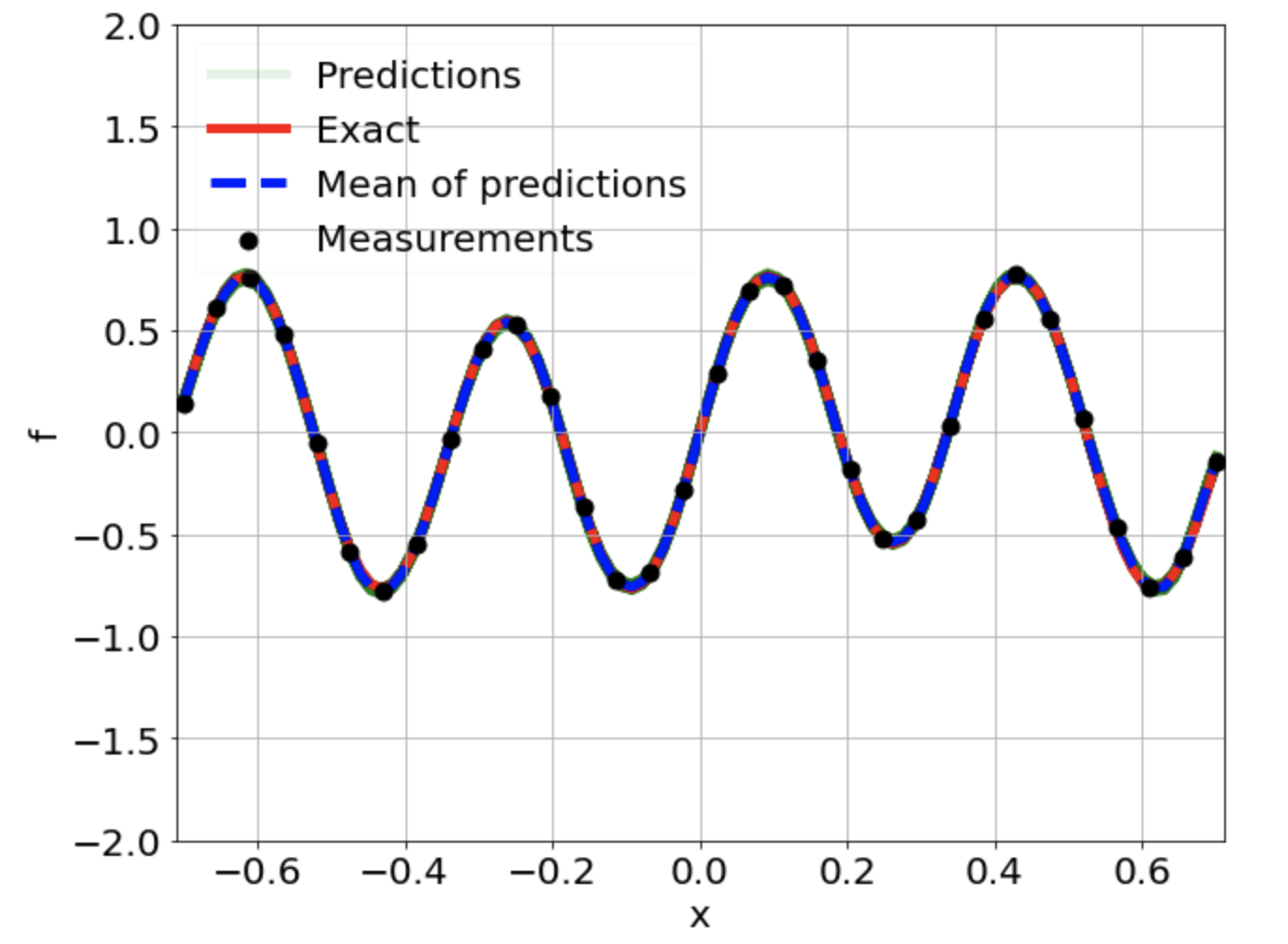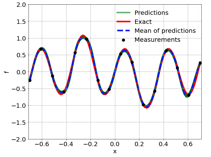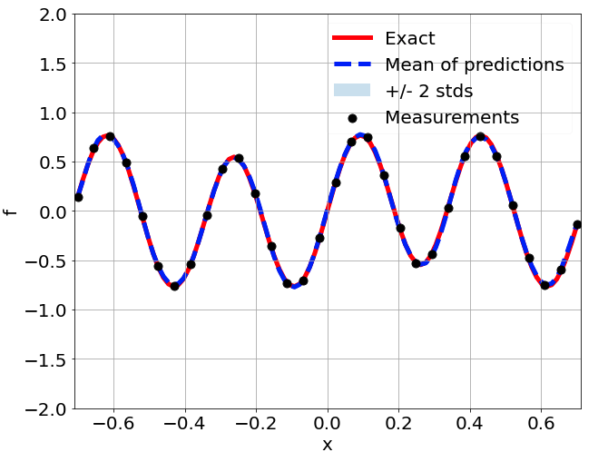 \[ \begin{gathered} \lambda \frac{\partial^2 u}{\partial x^2} + k \tanh(u) = f, \qquad x \in [-0.7, 0.7] \end{gathered} \] where \(\lambda = 0.01, k=0.7\) and \(u=\sin^3(6x)\)