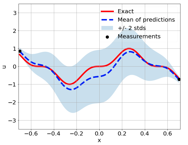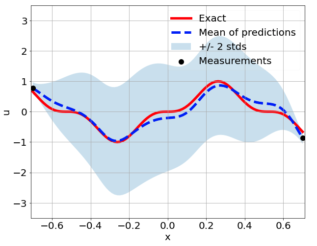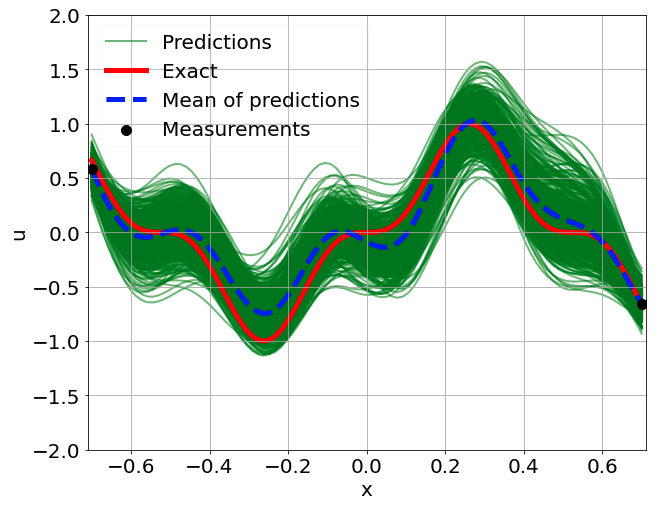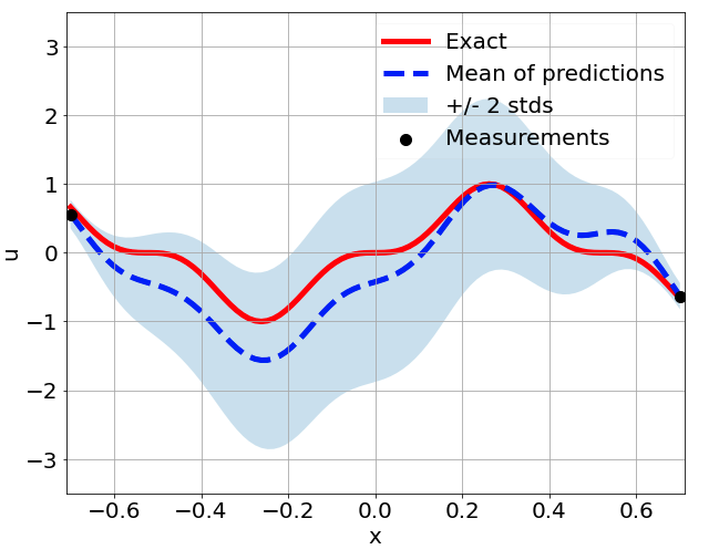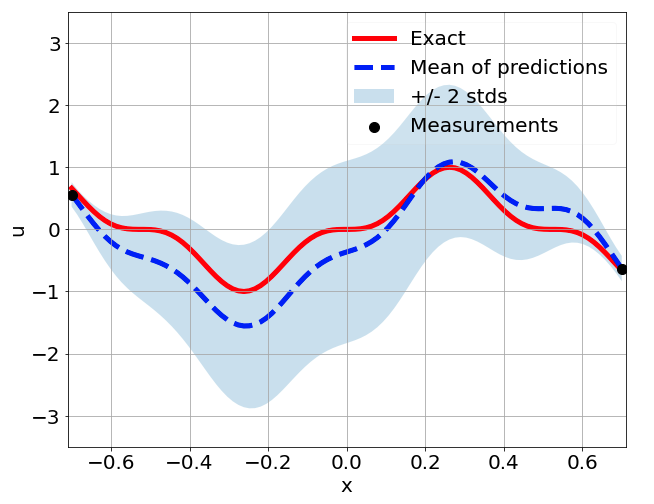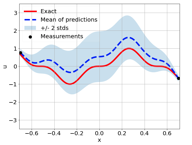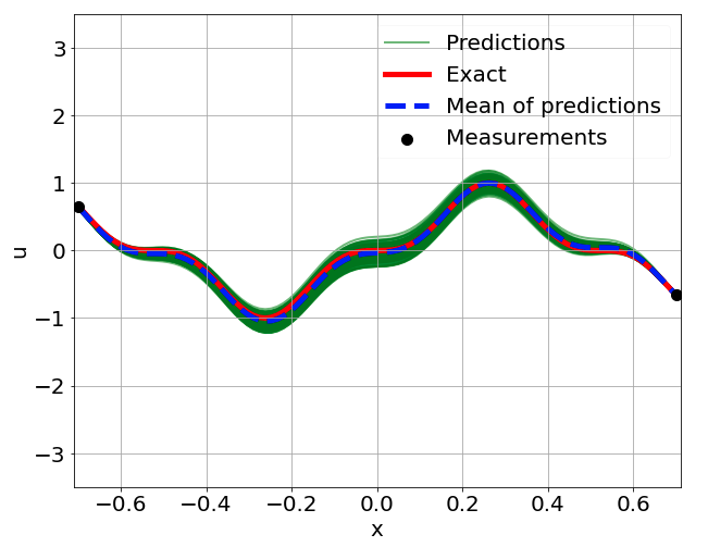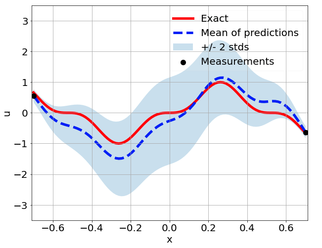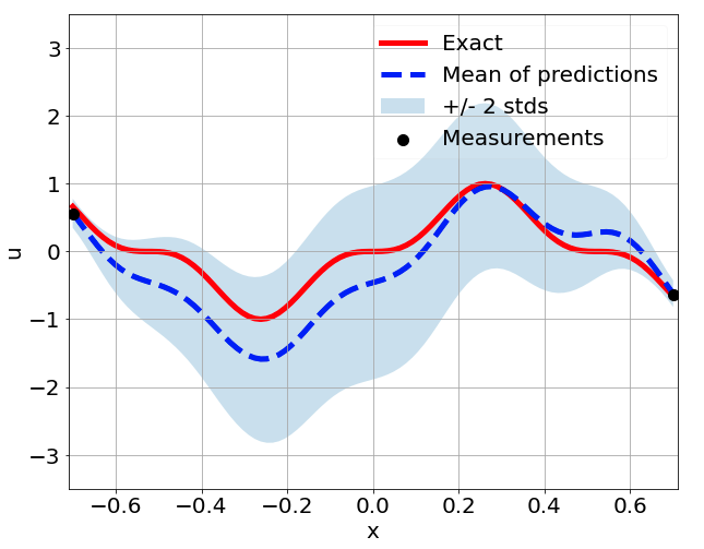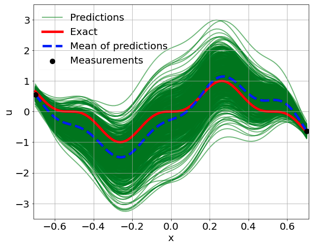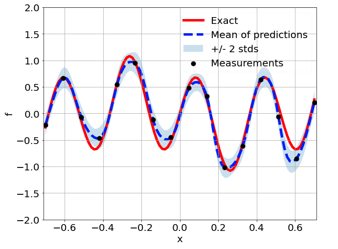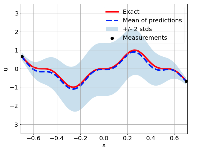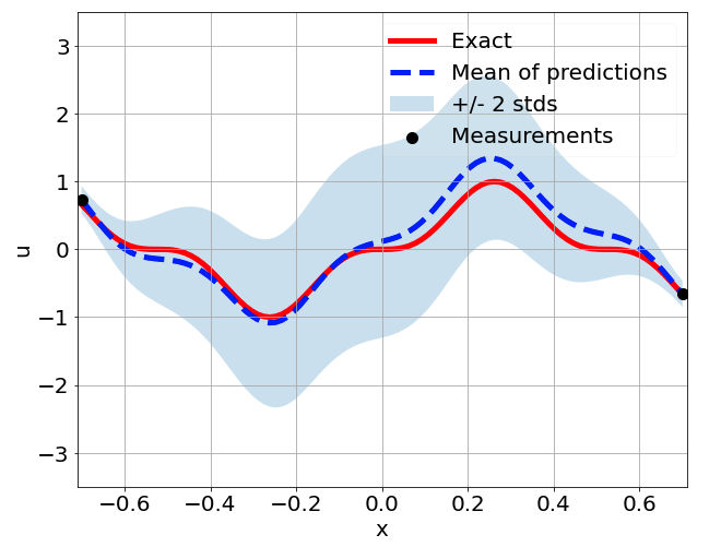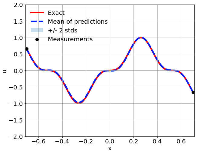 \[ \begin{gathered} \lambda \frac{\partial^2 u}{\partial x^2} + k \tanh(u) = f, \qquad x \in [-0.7, 0.7] \end{gathered} \] where \(\lambda = 0.01\).