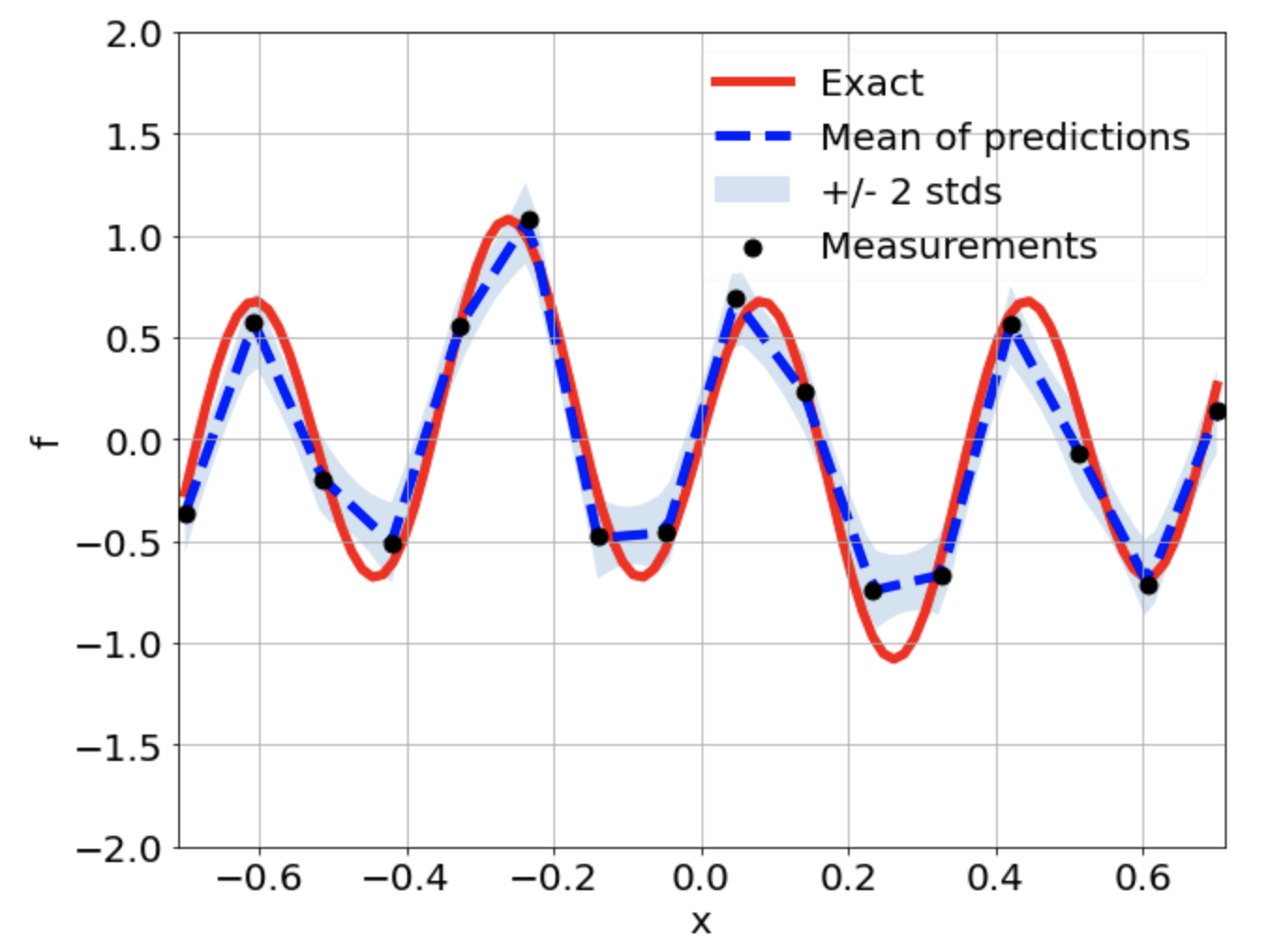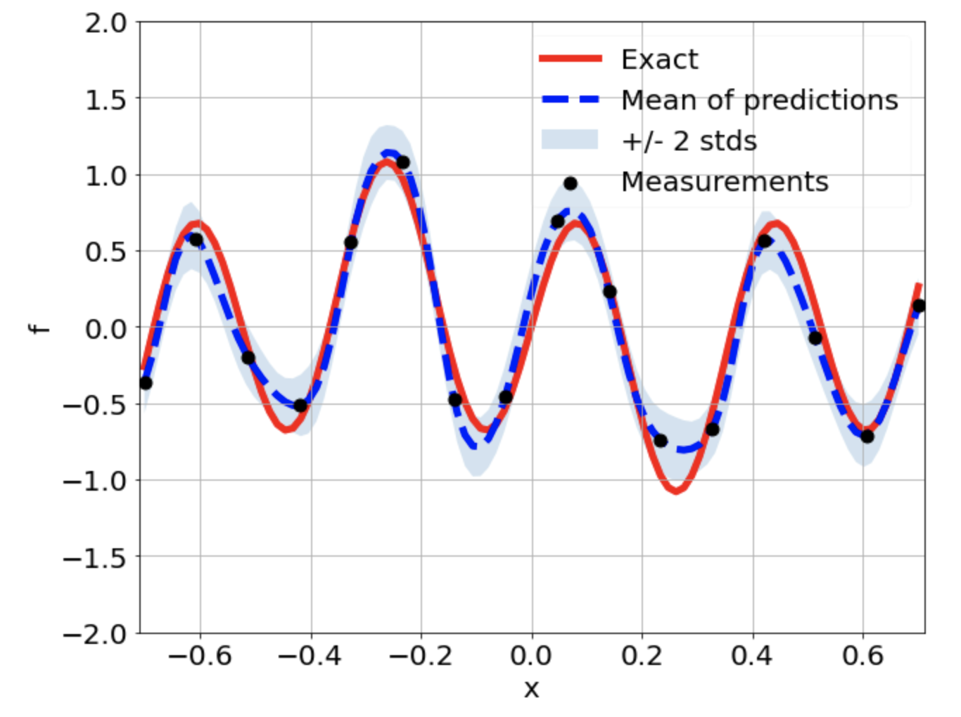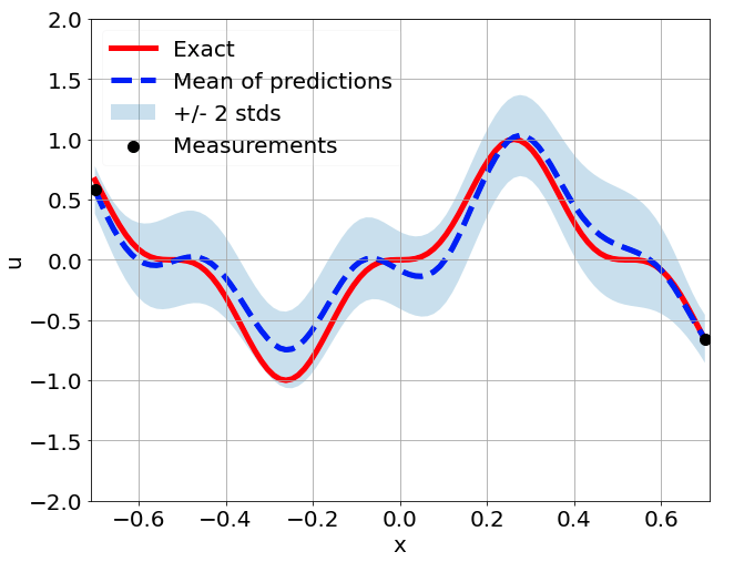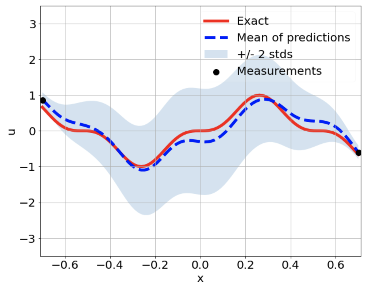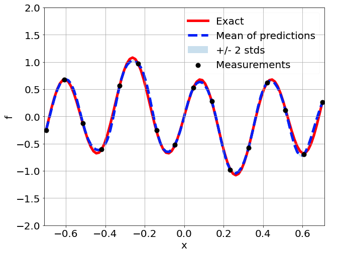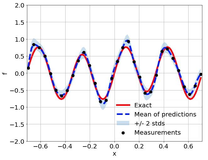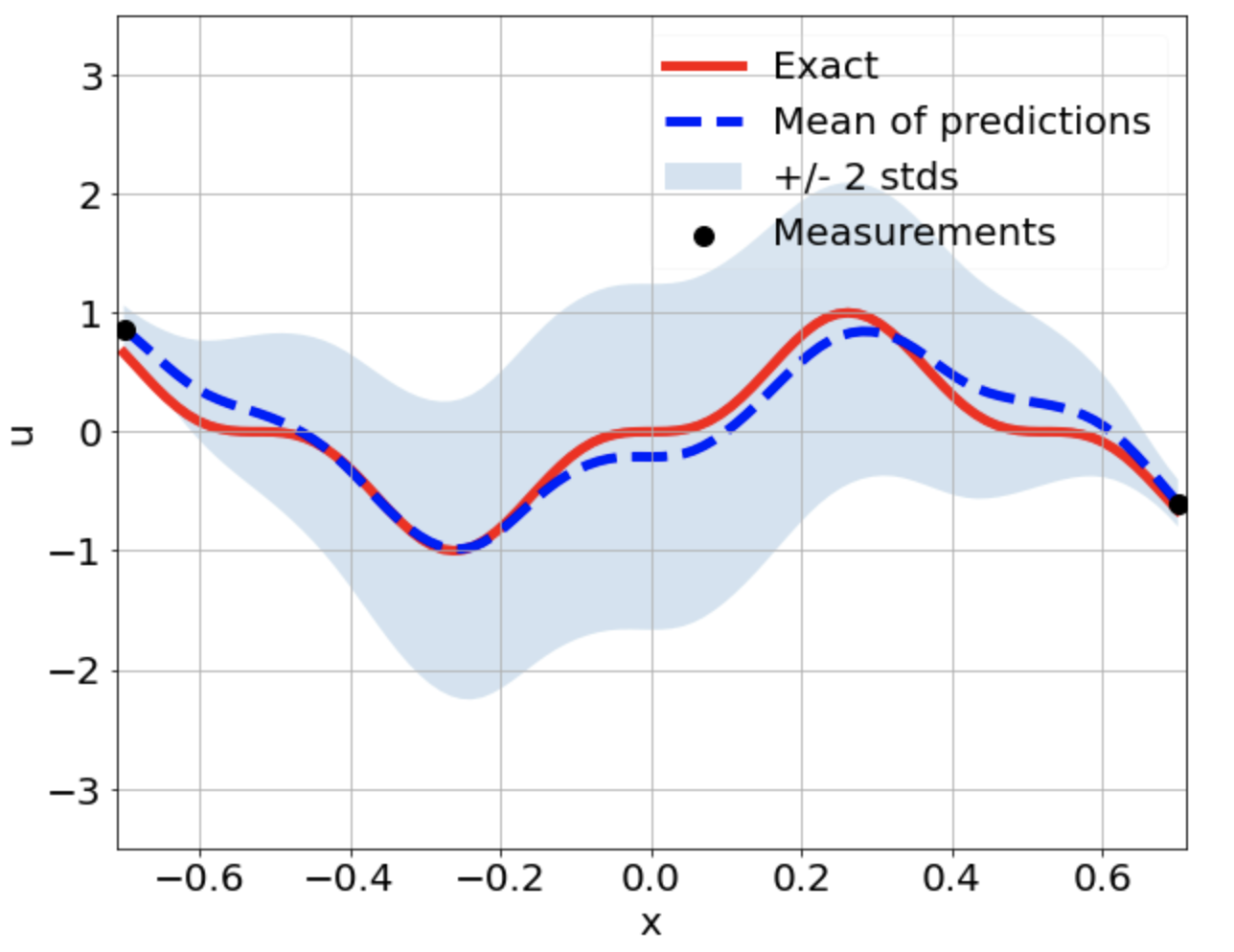 \[ \begin{gathered} \lambda \frac{\partial^2 u}{\partial x^2} + k \tanh(u) = f, \qquad x \in [-0.7, 0.7] \end{gathered} \] where \(\lambda = 0.01\).